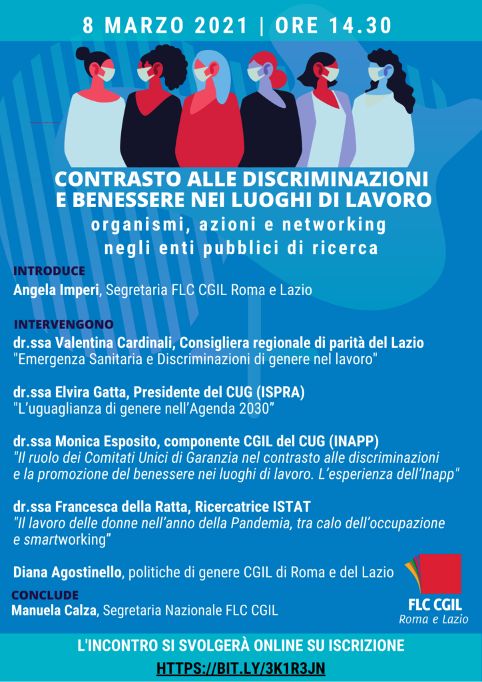 FLC CGIL, the Federation of Knowledge Workers of the CGIL, Italy, for International Women's Day has organised several national and local webinars, giving an additional venue for discussion about women in the education sectors, including schools and research. At the centre of the discussion the themes of prevention of gender-based violence, new dangers on the web, and stereotypes about women.