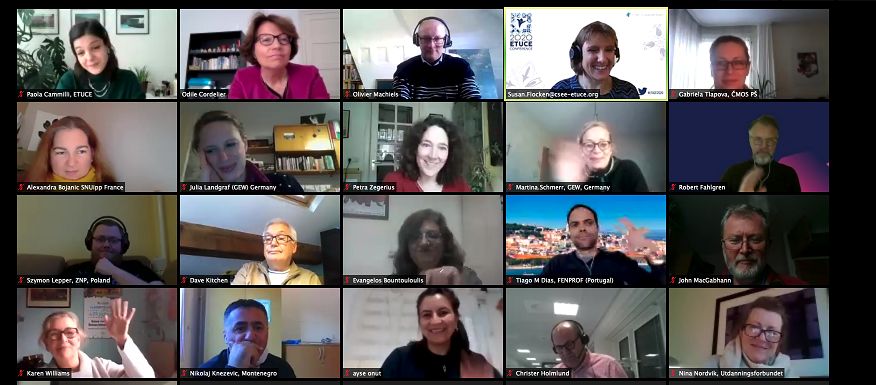 Данный вебинар, предшествующий Конференции ETUCE, прошел 13 ноября 2020 года и собрал представителей членских организаций ETUCE для обмена мнениями и информацией о текущих тенденциях в социальном диалоге по темам занятости и образовательной политики, колл